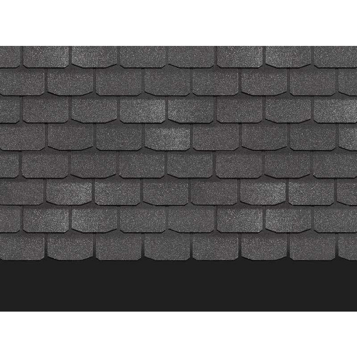 Мягкий переход графитовых оттенков и лаконичная форма лепестков гонтов не отвлекают внимание от формы и декоративных элементов кровли. Черепица отлично подходит для крыш большой площади. Она делает их визуально компактней.