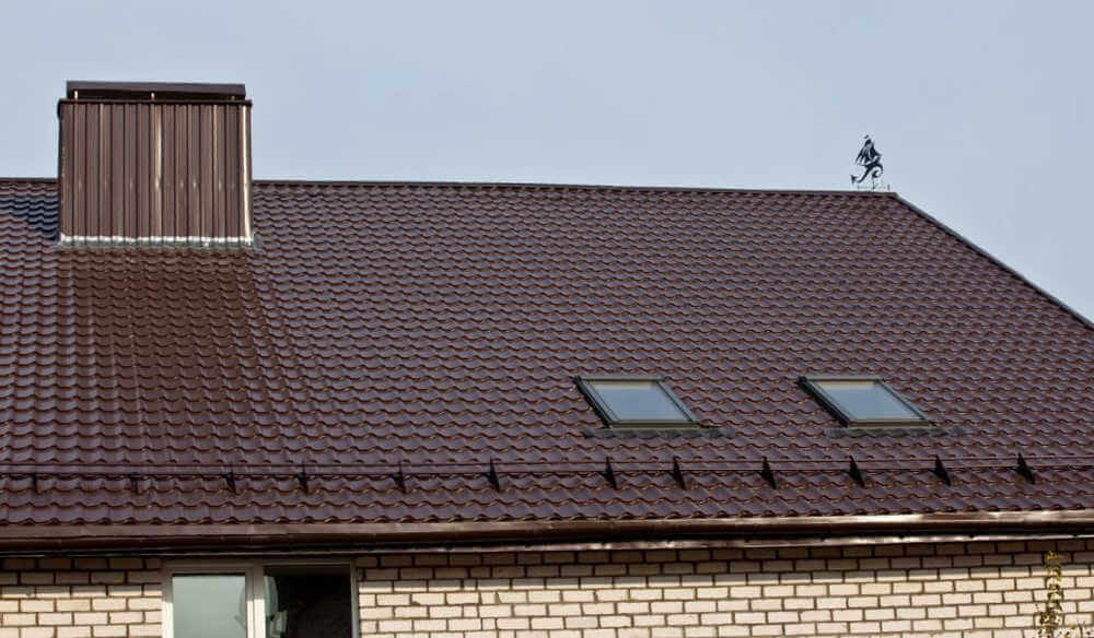 • Кровля защищена от механических воздействий, так как в основе металлочерепицы сталь толщиной 0.45 мм (с учётом металла, цинкового и полимерного слоя).